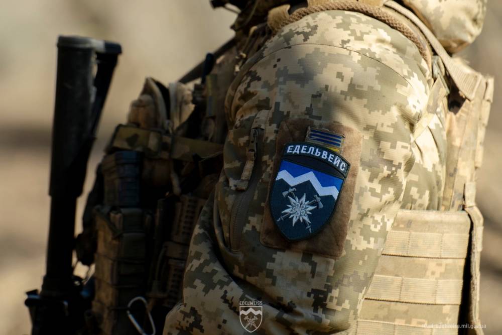 Після завершення базової загальновійськової підготовки військовослужбовці 10 окремої гірсько-штурмової бригади “Едельвейс” за контрактом 18–24 отримують свій перший символ належності до підрозділу – нарукавний шеврон бригади.