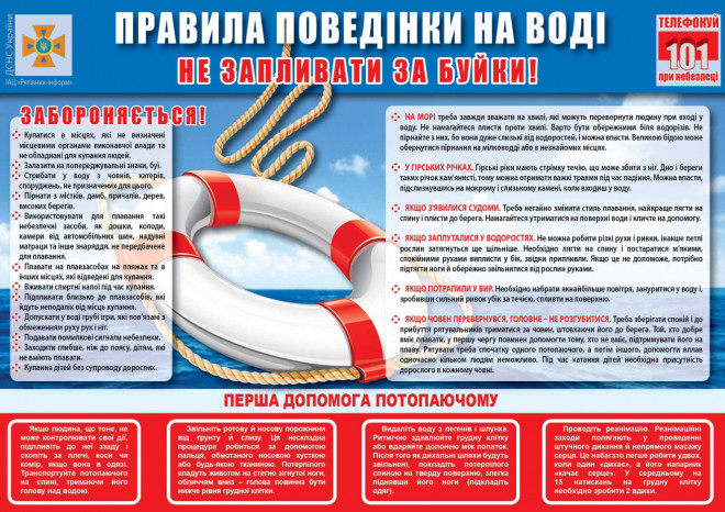 • дотримуйтесь елементарних правил безпечної поведінки на воді!