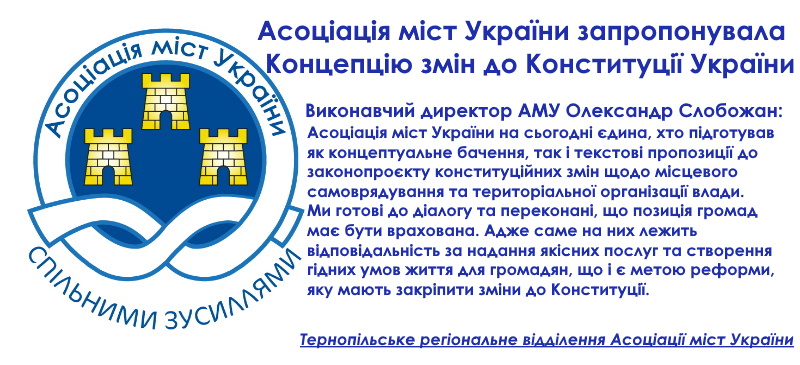 АМУ, яка об’єднує 878 громад, наголошує, що залучення її представників при опрацюванні остаточного тексту проєкту змін до Конституції України в частині місцевого самоврядування та територіальної організації державної влади є вкрай важливим. Саме такий шлях сприятиме досягненню консенсусу та порозуміння щодо внесення змін до Основного Закону нашої держави.