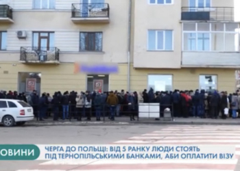 Черга до Польщі: від 5 ранку люди стоять під тернопільськими банками, аби оплатити візу