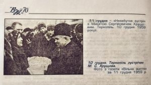 Зберегляся става вирізка з газети, де на світлині можна побачити, як у Тернополі зустрічали радянського державного діяча Микиту Хрущова. А...
