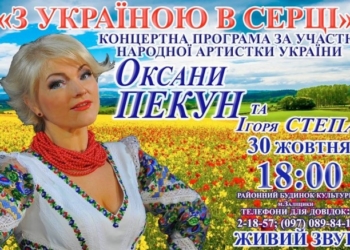 Афіша концерту Оксани Пекун 30 жовтня о 18.00 год. у Заліщиках відбудеться концерт за участю народної артистки України Оксани ПЕКУН....