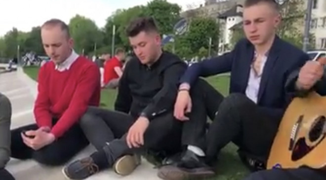 Кілька хлопців під гітару виконали кавер на пісню “Мама”.