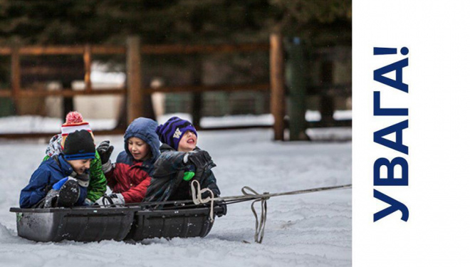 - застерігайте дітей бути обережними під час катання на санчатах, лижах, ковзанах.