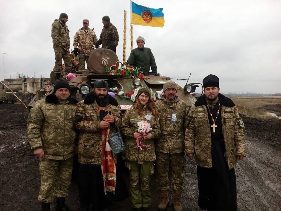 У камуфляжі замість весільної сукні, бойова машина замість лімузина — у зоні АТО весілля відгуляли Руслан з Тернопільщини та його обраниця Наталя. Разом воювали у з 28 бригаді.