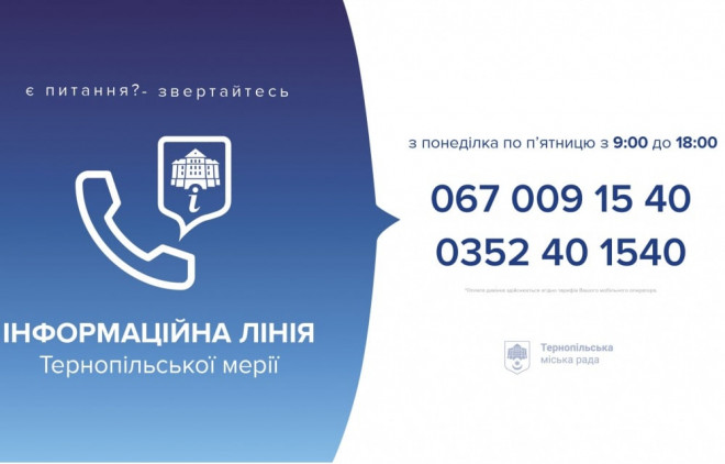Як повідомив у соціальній мережі міський голова Тернополя Сергій Надал, жителі міста можуть телефонувати за номерами 0670091540, (0352) 401540 з питань: