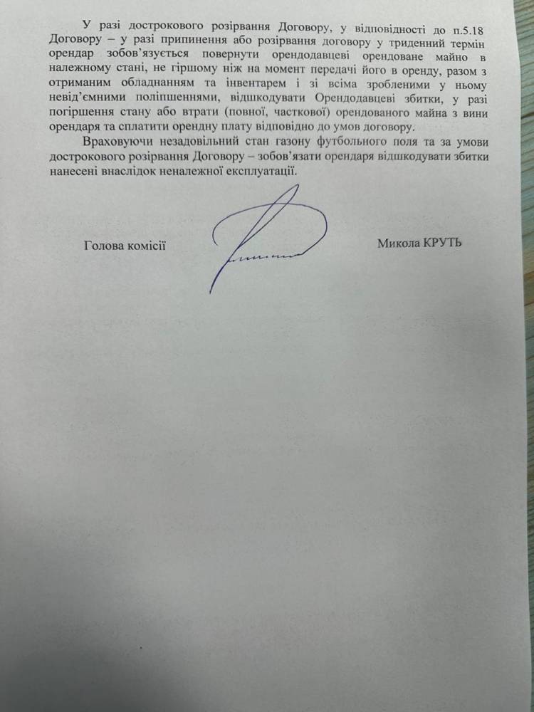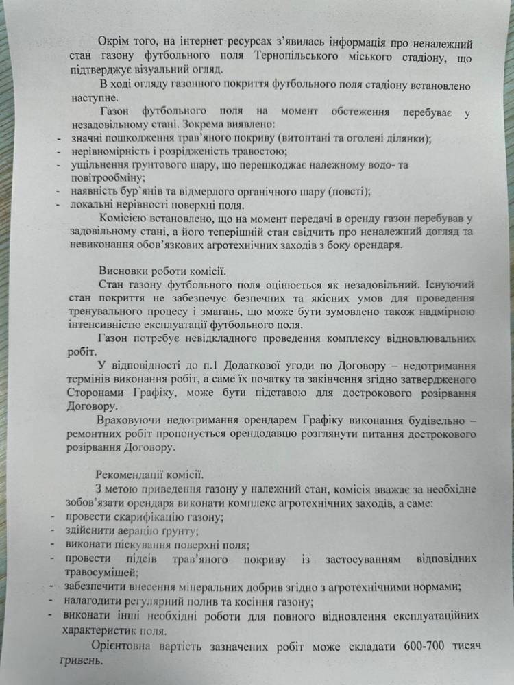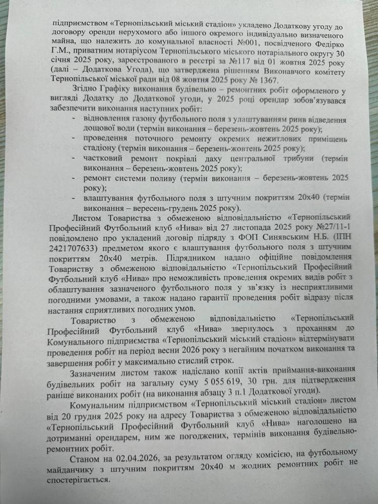 Грудень 2025: офіційний лист-попередження від КП «Тернопільський міський стадіон».