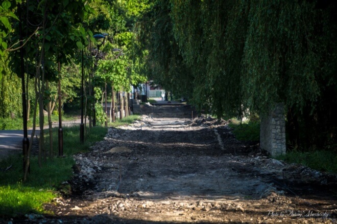До здійснення цих робіт приступили нещодавно – тут ремонтують доріжку між центральним фонтаном і скейт-парком.