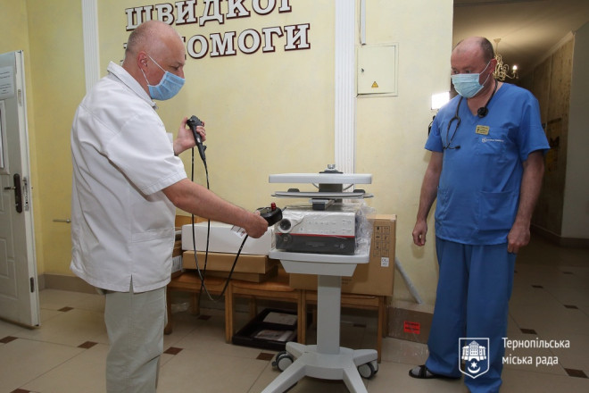 Медики Тернопільської міської комунальної лікарні швидкої медичної допомоги отримали у роботу сучасний відеобронхоскоп. За допомогою відеобронхоскопу медики зможуть швидко обстежувати дихальні шляхи пацієнта, встановити точний діагноз, взяти матеріал на дослідження (гістологія, цитологія) та виконувати лікувальні маніпуляції.