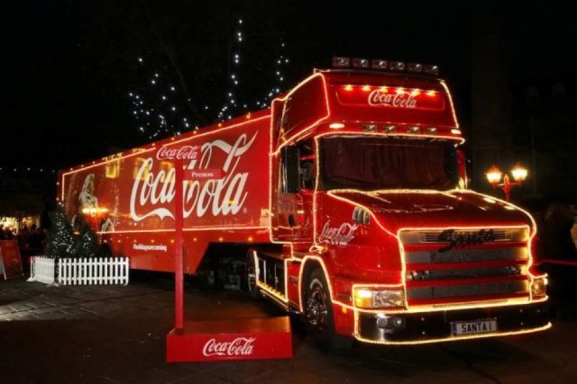 “Друзі! Запрошуємо вас на новорічне свято Coca-Cola. 5 січня новорічна вантажівка Coca-Cola #БудьСантою завітає до Тернополя!