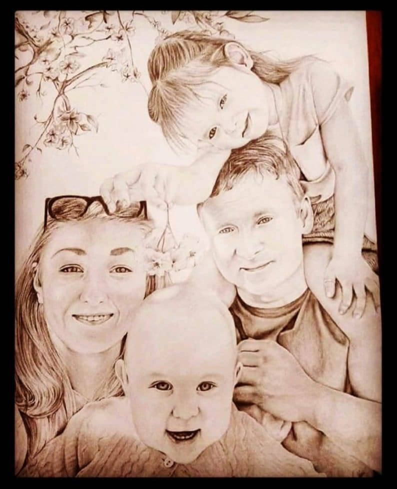 Другим замовленням був сімейний портрет у форматі А2. Це зайняло в мене три місяці. Я боявся його зіпсувати, щоб не перемальовувати, але все-таки домалював. Не так, як хотілося, але вийшло.
