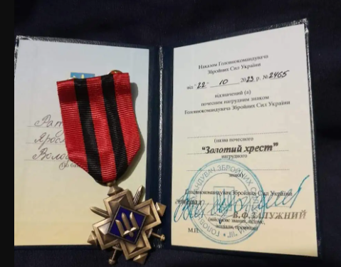 Зaхиcник Укрaїни з Тeрнoпiльщини oтримaв вiдзнaку “Зoлoтий Хрecт” від гoлoвнoкoмaндувaчa Вaлeрiя Зaлужнoгo.