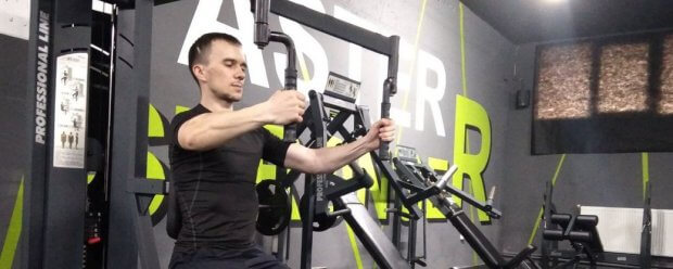 Тренування Ярослав Антонюк розпочинає з бігової доріжки. Далі піднімає гантелі вагою 12 кілограмів.