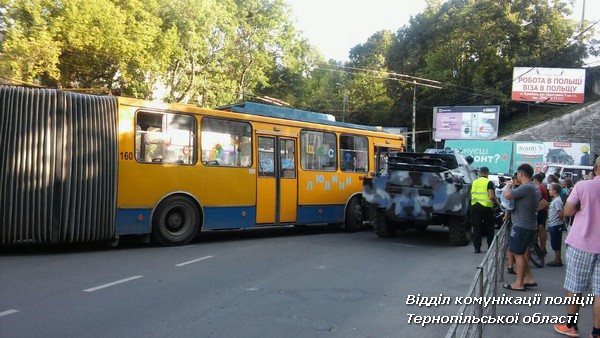 Повідомлення про дорожньо-транспортну пригоду надійшло 9 серпня близько 18 години на лінію «102» від мешканця обласного центру. Чоловік повідомив, що на вулиці Бродівська у Тернополі зіткнулися тролейбус та БРДМ.