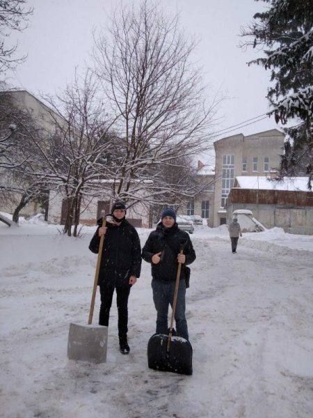 У Тернополі керівник і волонтери молодіжної організації «Сильні серцем» допомагали прибирати сніг у пік зимової негоди.