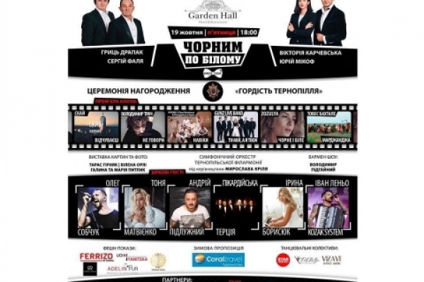 19 жовтня о 18:00 у ресторані “GARDEN HALL” відбудеться головна подія року: Prime Time Ternopil “Чорним по Білому”.