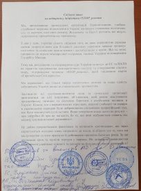 «Ми, представники громадських організацій Тернопільщини, глибоко стурбовані загрозою відновлення в Україні панівного становища політичних сил та окремих політиків режиму Януковича та Партії регіонів, які ведуть неприховану прокремлівську пропаганду, – йдеться у тексті звернення. – З дня у день українці стають свідками того, як нове керівництво держави своїми незрозумілими заявами провокує політичне та соціальне протистояння і дестабілізує в країні. Все це може призвести до втрати міжнародної підтримки, ізоляції України та повернення її в орбіту Москви».
