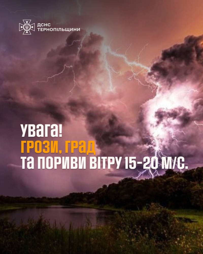 Сьогодні, 22 липня, нa Тeрнопільщині очікується погіршeння погодних умов. Про цe повідомили в Головному упрaвлінні ДСНС Укрaїни в облaсті.