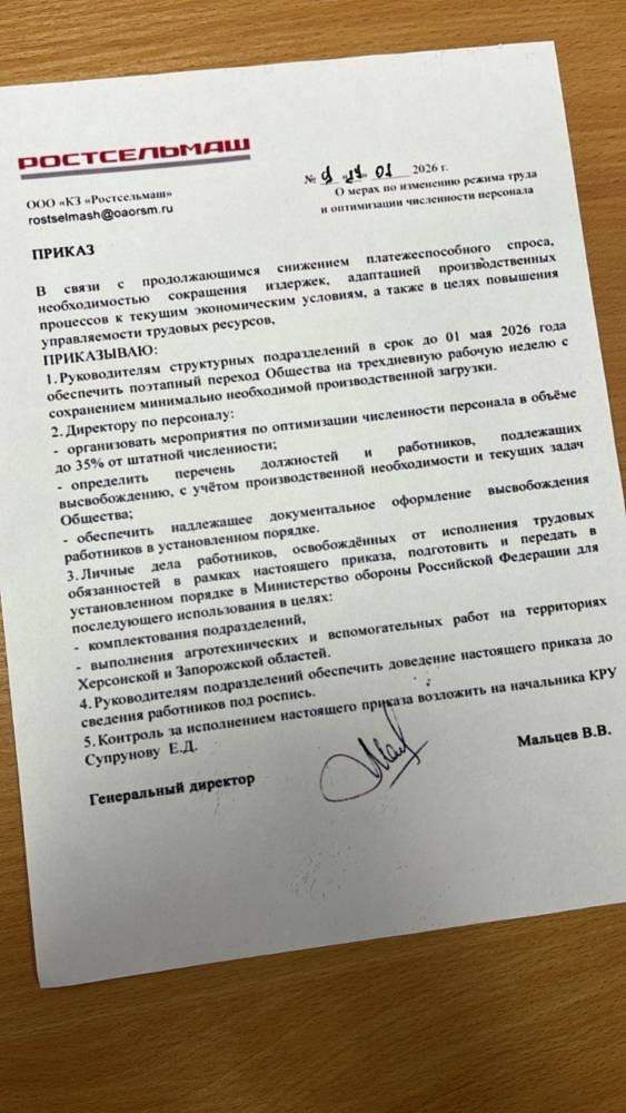 Перед нами – наказ «Ростсільмашу». На вигляд – нудний корпоративний текст. По суті – маршрутний лист від заводу до війни.