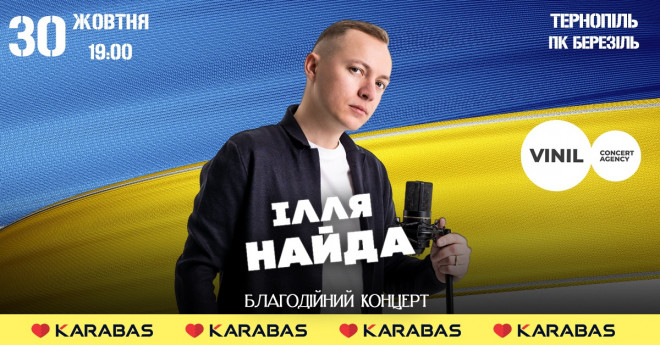 29 жовтня у  ПК «Березіль» у Тернополі відбудеться благодійний концерт на підтримку ЗСУ Іллі Найди.