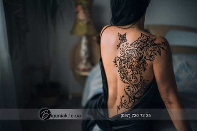 — Нині розпис тіла хною став модним трендом,  — розповідає Тамара Бігуняк, — а чотири роки тому, коли я почала вивчати це мистецтво, мехенді у Тернополі не займався ніхто — довелося бути “першопрохідцем”. Замовляла спеціальну хну для малювання з Індії, вчилася, спершу навіть на собі, тож можу тепер сміливо заявляти, що все спробувала на власній шкірі… (сміється, — авт.)