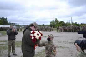 Офіцер, перед вибуттям в ООС подарував каблучку та букет троянд, освідчившись в коханні нареченій.