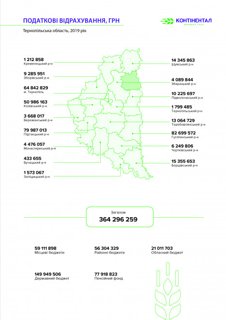 «Контінентал Фармерз Груп» вкотре підтвердила свій статус сумлінного платника податків і надійного партнера місцевих громад, оприлюднивши звіт про виконані у 2019 році податкові та соціальні зобов’язання. Так, підприємства Компанії, розташовані у Тернопільській області, до бюджетів всіх
