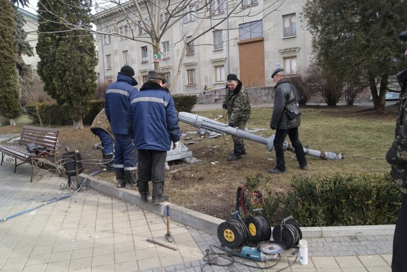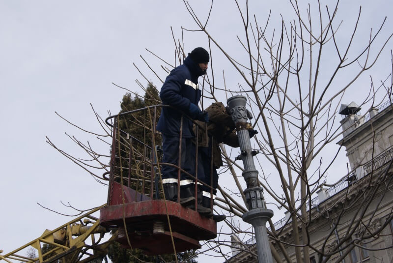 Вчора працівники КП «Тернопільміськсвітло» приступили до демонтажу опор та світильників у «Сквері Кобзаря», поблизу пам’ятника Шевченка, з метою подальшого здійснення їх реставрації.