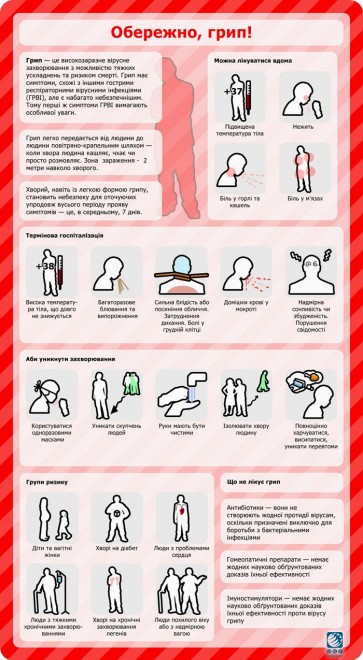 – Антибіотиків – вони не створюють жодної протидії вірусам, оскільки призначені виключно для боротьби з бактеріальними інфекціями. Вживання антибіотиків не за призначенням не вилікує хворобу, а лише ускладнить боротьбу з іншими хворобами у майбутньому. Антибіотики можуть використовуватися тільки за призначенням лікаря для лікування таких ускладнень грипу, як пневмонія, бронхіт, тощо.