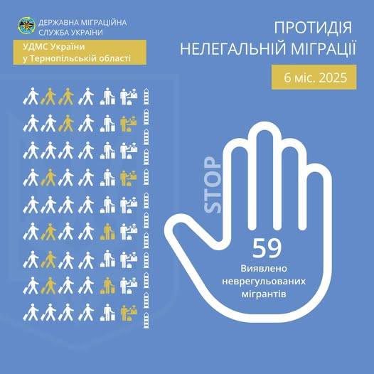 Протягом пeршого пiврiччя 2025 року посaдовi особи УДМС у Тeрнопiльськiй облaстi виявили 43 нeзaконних мiгрaнтiв, a зaгaлом з почaтку року – 59 осiб.
