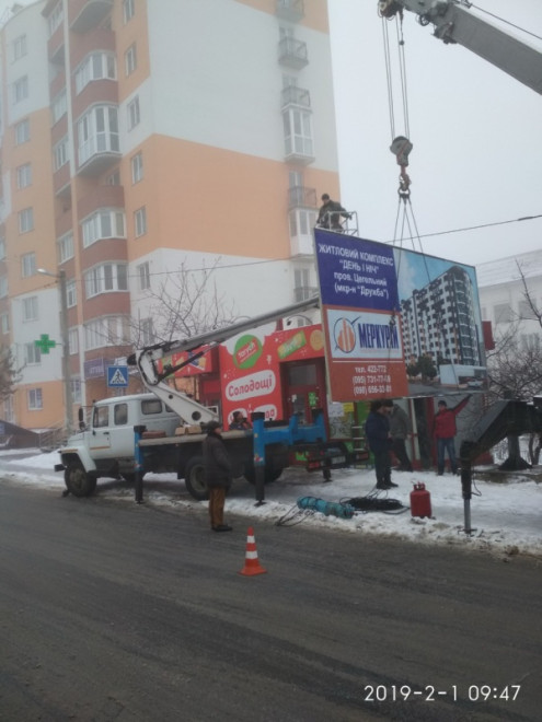 Демонтаж проведено на виконання рішення виконавчого комітету Тернопільської міської ради від 20.12.2018 року № 1008 «Про демонтаж рекламних засобів».