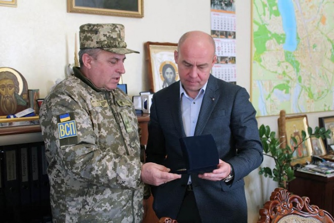 Леонід Бицюра вручив жителям Попасної, які найбільше сприяють українським військовим у службі в зоні АТО, відзнаки міського голови Тернополя.