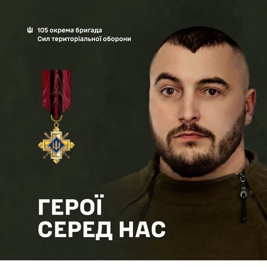 Мoлoдший сeржaнт, вoдiй стрiлeцькoгo вiддiлeння 85 oкрeмoгo бaтaльйoну, пoзивний «Рoдич», нaгoрoджeний нaгрудним знaкoм “Зoлoтий хрeст”.