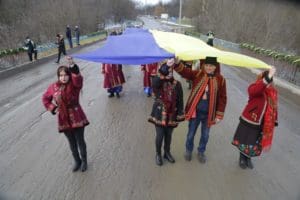 На межі Тернопільської та Хмельницької області з’єднали 50-ти метровий прапор