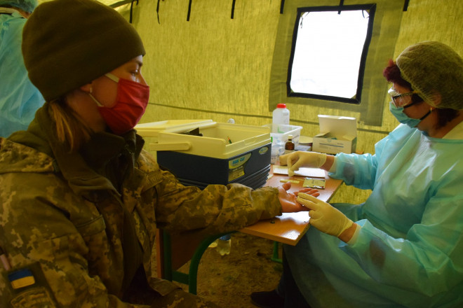 Заходи здійснюють представники лабораторії з Рівненського військового шпиталю на виконання розпорядження головного санітарного лікаря Міністерства оборони України. Процедуру проводять в рамках проведення протиепідемічних заходів та посиленого медичного спостереження військовослужбовців. Діагностують на коронавірус капілярним методом (з пальця кров), використовуючи експрес-тести. Фахівці отримують результати на місці упродовж п’ятнадцяти хвилин.