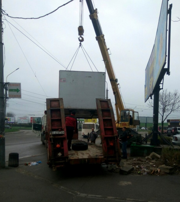 На просп. Степана Бандери демонтовано тимчасову споруду- автопричіп