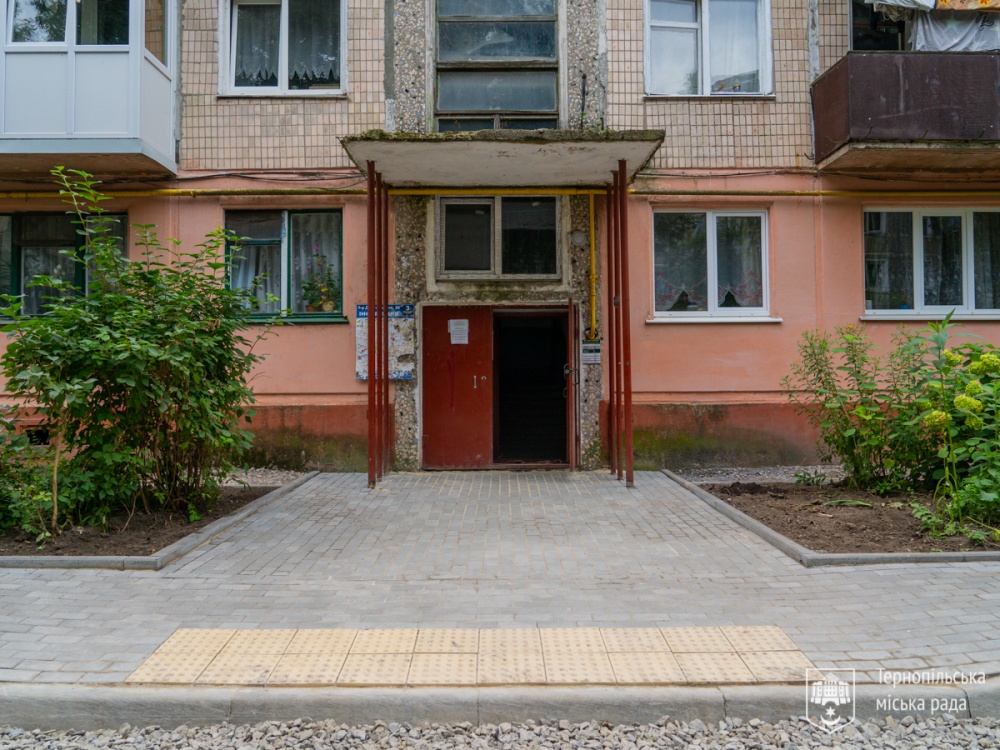«За цією адресою працівники підрядної організації уже облаштували фігурними елементами мощення пішохідну ділянку, зробили пониження бордюрів та вклали тактильну плитку. Відповідно до проєктно-кошторисної документації, тут також буде зроблена відмостка навколо будинку, – розповідає міський голова Сергій Надал. – Наразі тривають завершальні роботи на проїжджій частині, яку дещо розширили, і, на прохання мешканців будинку, в дворі будуть влаштовані додаткові місця для паркування транспорту. При сприятливих погодних умовах ремонтні роботи можуть бути завершені впродовж декількох днів».