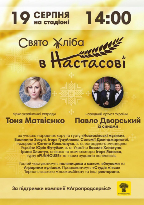 На Спаса (19 серпня) у Настасові Тернопільського району громада села організовує свято хліба та урожаю. Мешканців Настасова, Йосипівки, Мар’янівки та їхніх гостей частуватимуть паляницями з маком, яблуками та “аграрним” кулішем.