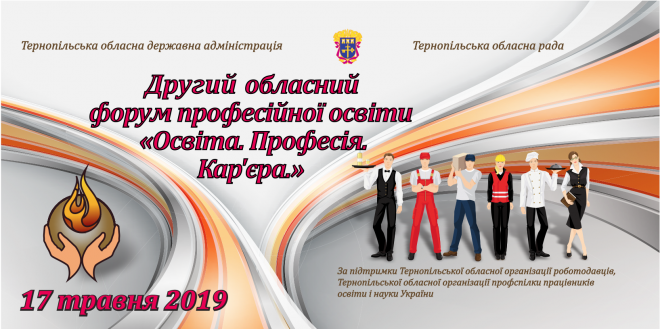 Уже цієї п’ятниці, 17 травня, у Тернополі відбудеться ІІ обласний форум професійної освіти «Освіта. Професія. Кар’єра». Місце проведення – парк імені Тараса Шевченка. Час – з 11.00 до 15.00 год.