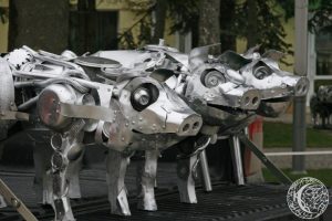 sviniСергій Кузнєцов – автор цілої серії скульптур, виготовлених з металевого брухту. Його витвори набули широкої популярності в місті та його околицях. Дизайнерські роботи Сергія прикрашають різні частини Тернополя. Так, у місті можна побачити металевих кіборгів та ретро авто.