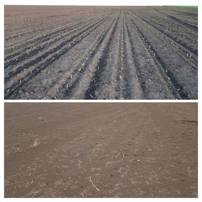 “Піщана буря на Тернопільщині. Такого тут не пам‘ятають. На фото поле з цукровим буряком до і після. В сто гектарів вкладено приблизно 2 мільйони, які пісок закопав за хвилини.