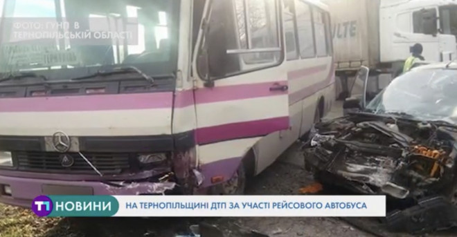 За попередньою інформацією, водій автомобіля Renault врізався в пасажирський автобус, який курсував за маршрутом “Нетішин-Тернопіль”.