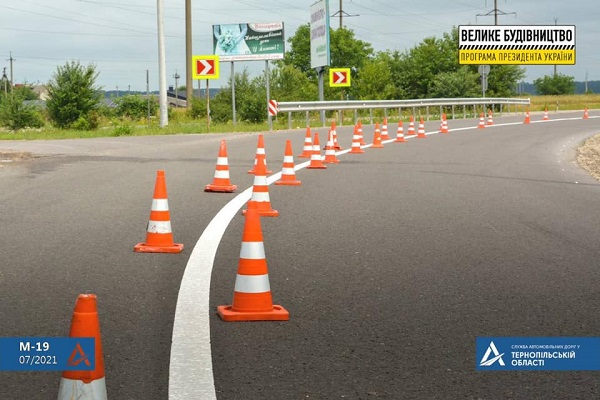 Довідково: загальна протяжність автошляху М-19 разом з транспортними розв’язками в межах Тернопільської області становить 212,3 км. Усього протягом 2020-2021 років відновлюється 145 км автошляху М-19 у Тернопільській області. На усій протяжності вже влаштовано фінішний шар покриття з щебенево-мастикового асфальтобетону.