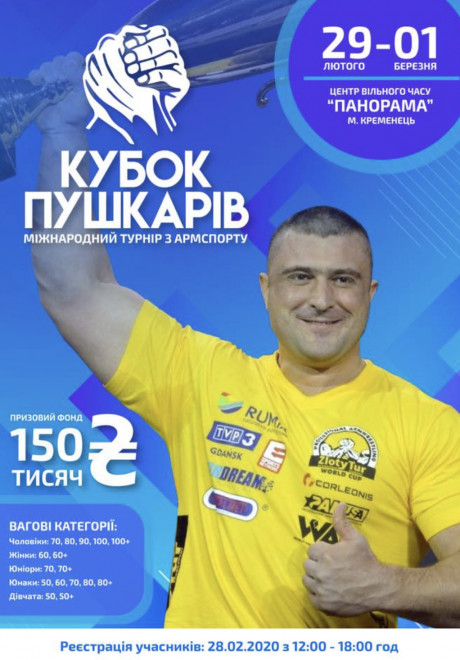 «Друзі, запрошую на велику подію — Міжнародний турнір з армспорту «Кубок Пушкарів». Андрій мріяв про такі змагання у Кременці, – написала у соцмережі Світлана Пушкар. – 9 років поспіль він проводив в цьому місті турнір пам’яті батька «Кубок Західної України». Хочу зберегти традицію, створену Чемпіоном, і втілити його задум в життя».
