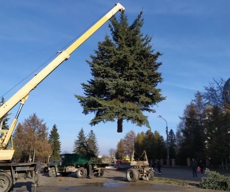 У Тернопільському мікрорайоні “Східний” встановлюють живу новорічну красуню