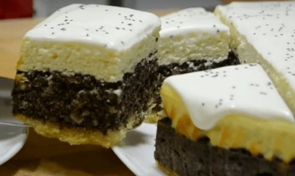 На пісочний корж вилити макову начинку, на неї – сирну, випікати за температури 180 градусів приблизно 1 год.