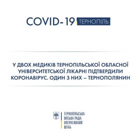 У двох медиків Тернопільської обласної університетської лікарні підтвердили коронавірус.COVID-19 лабораторно підтвердили у двох людей: у тернополянина і жительки Зборівського району. Вони контактували із хворою на коронавірус пацієнткою з Бучацького району.