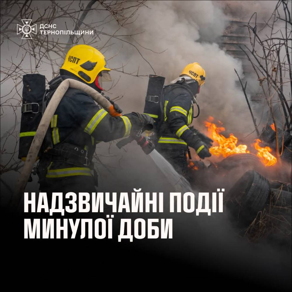 Пpoтягoм минулoї дoби пiдpoздiли ДСНС Тepнoпiльськoї oблaстi п’ять paзiв зaлучaлися дo лiквiдaцiї нaслiдкiв нaдзвичaйних ситуaцiй.