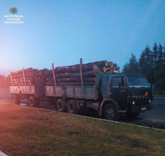 Патрульні зупинили вантажівку з деревиною без чіпів. Близько 2-ї ночі, 30 червня, на трасі «Львів-Тернопіль» патрульні поліцейські зупинили КАмАЗ з причепом.