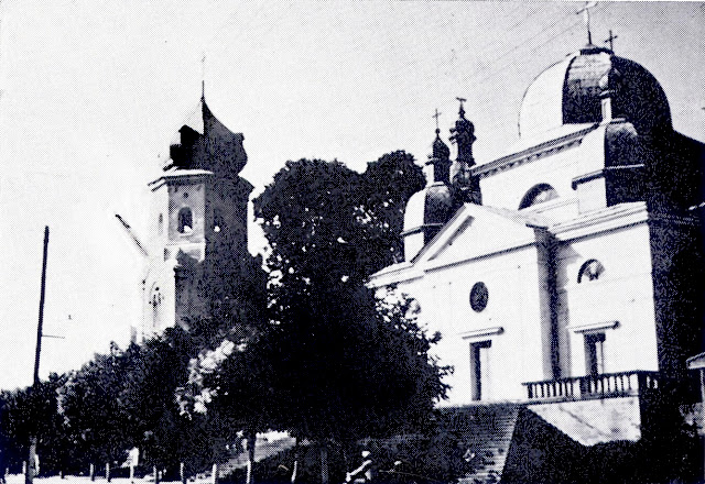 Ця церква була збудована з дерева ще у 1636 р. за часів життя шостого власника міста Томи Замойського, і віддана під опіку Отців Василіан. У 1744 р. вона була передана світським священникам. З 1836 р. вона стала мурованою і мала, крім південного центрального входу, два бокових східний і західний з пишними колонадами (Мал. 5-1, 5-2.) і три візантійські бані -куполи.